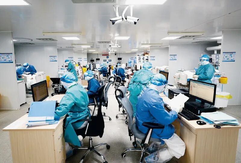 2020年2月24日,火神山医院重症医学一科工作场景。人民图片 王皓宇/摄