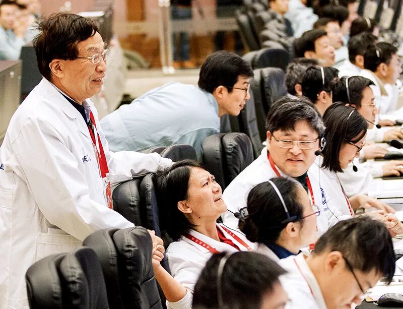2019年1月3日,嫦娥四号成功落月的那一刻,74岁的中国航天科技集团五院深空探测和空间科学首席科学家、嫦娥一号卫星总设计师叶培建院士(左一)静静走到嫦娥四号探测器项目执行总监张熇的身后,对她表示祝贺和鼓励。两代“嫦娥人”的手紧紧握在了一起。新华社记者 金立旺/摄今年,长征五号将再次出征,执行我国首次火星探测任务“天问一号”;今年,北斗卫星导航系统全球组网即将建成,中国北斗将服务于世界;今年,嫦娥五号将取回属于中国人的月球样本,探月工程将迈向全新阶段。