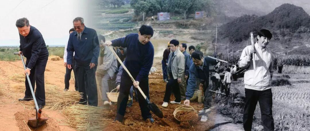 右边这张照片的故事发生在福建。这是1989年,时任福建宁德地委书记的习近平带领地直机关千余名干部到水利工地参加修整水渠劳动。