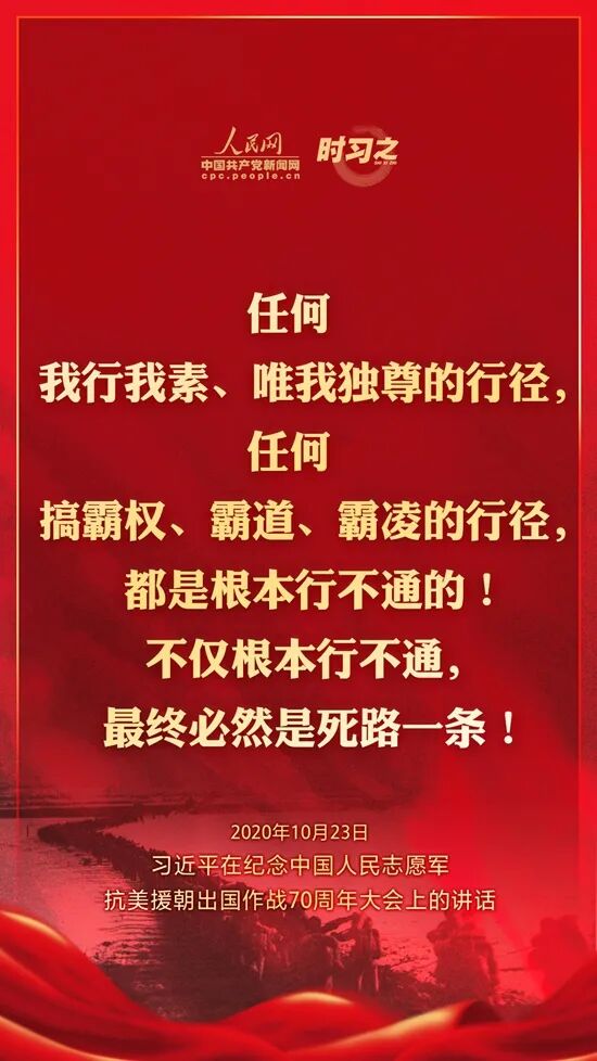 任何我行我素、唯我独尊的行径,任何搞霸权、霸道、霸凌的行径,都是根本行不通的!