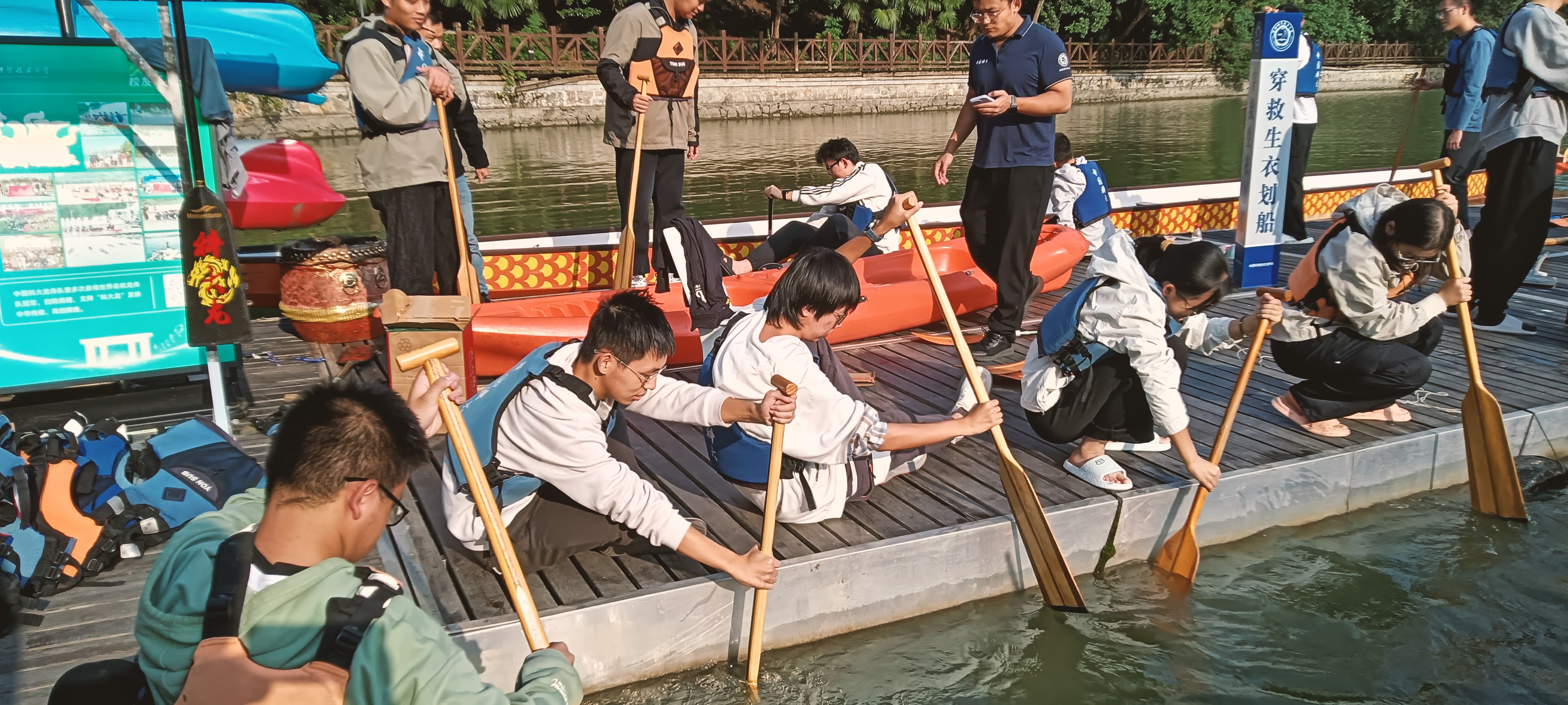 为进一步强化校园安全建设,提升学生水上安全防范意识,并弘扬中华优秀传统文化,10月26日,学生工作部(处)、人武部策划并举办了2025年秋季学期学生安全委员龙舟文化实践暨水上安全教育活动。活动内容涵盖热身科普、水上安全知识讲解、龙舟划桨教学与实践、桨板及休闲皮划艇体验等多个环节,吸引了40余名学生安全委员积极参与。本次活动由学生工作部(处)国防与安全教育办公室具体组织,办公室主任常军带队,校龙舟队与龙舟协会全程支持协作。