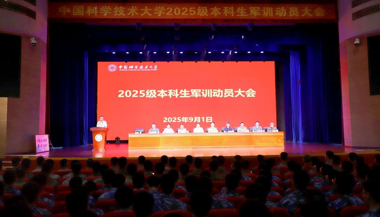 9月1日下午,中国科学技术大学2025级本科生军训动员大会在东区大礼堂举行。国防科技大学电子对抗学院相关领导,中国科大党委副书记周丛照及学生工作部(处)、人民武装部、招生就业处、教务处、保卫与校园管理处、校团委等部门代表出席了本次大会。大会由校党委常委、统战部部长、学工部(处)部(处)长、人民武装部部长、军训团团长李峰主持。